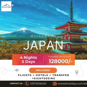 Showing all 2 results Default sorting Sort by popularity Sort by average rating Sort by latest Sort by price: low to high Sort by price: high to low Sale! 3 NIGHTS 4 DAYS JAPAN PACKAGE ৳ 115,000.00 ৳ 99,500.00 Add to cart Sale! 4 NIGHTS 5 DAYS JAPAN PACKAGE ৳ 140,000.00 ৳ 128,000.00 Add to cart
